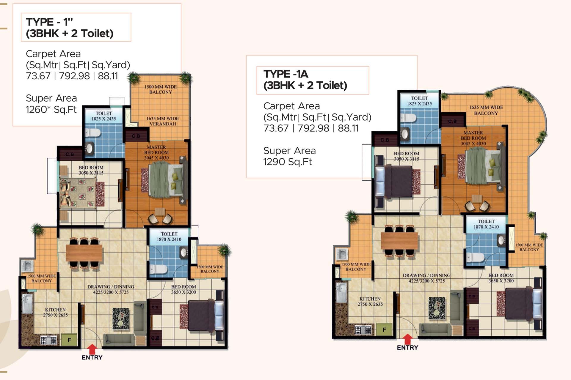 Type 3 BHK Flats / Apartments | Builtup Area 1260 Sq.ft. | Price Call for Price | Floor Plan
